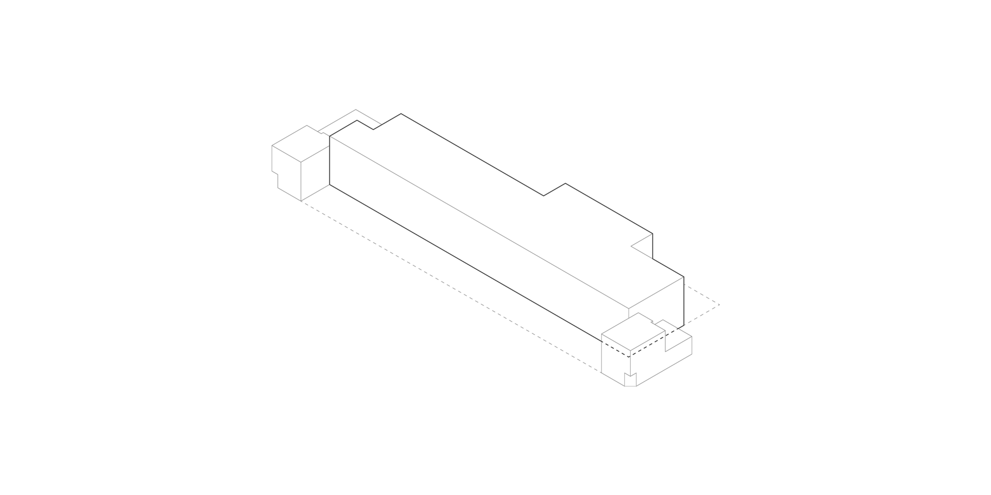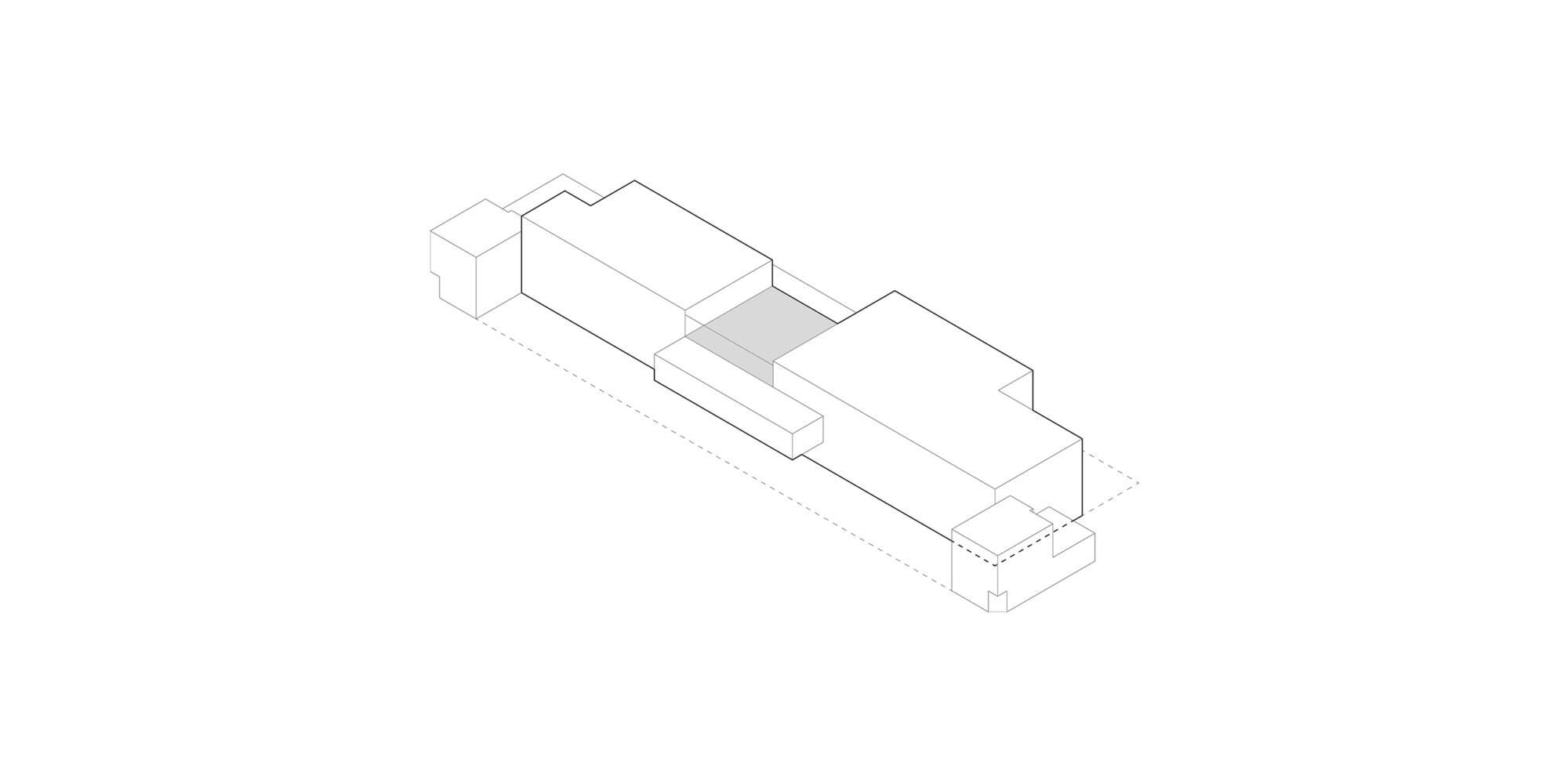 De locatie voor de wijkschool was vrij ondiep en langgerecht. Aan weerszijden grenst het perceel aan twee identieke historische bouwvolumes, die we graag als hoekstenen binnen de planvorming wilden behouden. Uiteindelijk bleek de locatie te krap om voor alle groepen op de begane grond buitenspeelruimte te maken én te voorzien in parkeervoorzieningen voor auto’s en fietsen. Zo is de beschikbare buitenspeelruimte op maaiveld gereserveerd voor de onderbouw en is de speelruimte voor de midden- en bovenbouw naar het dak verplaatst. Om de speelruimte op het dak te kunnen realiseren is een deel van het programma uit het volume genomen en als uitkraging aan de voorzijde teruggeplaatst.