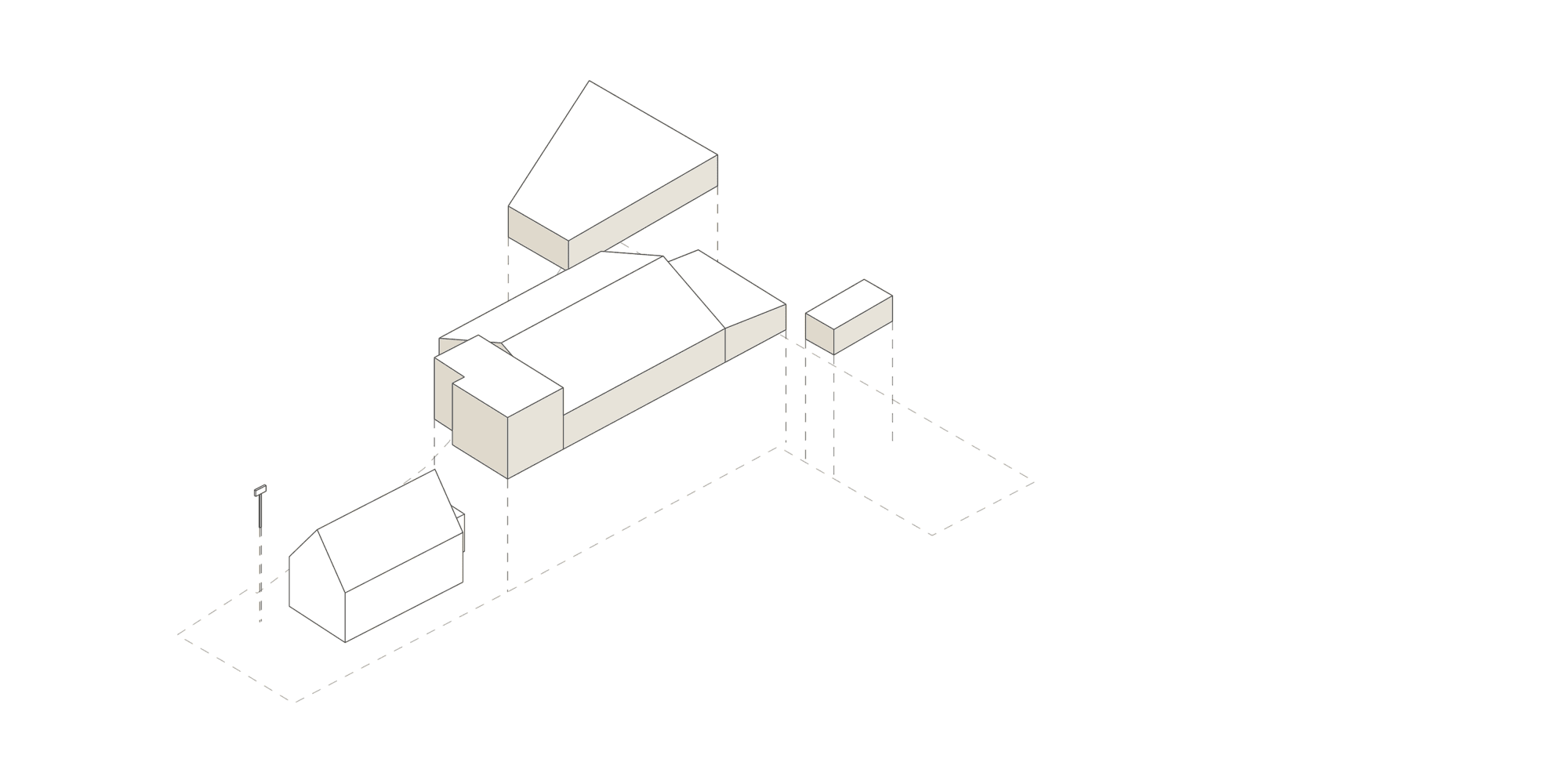 Het plangebied bevindt zich op het achterterrein van de locatie, die bereikbaar is via een verbrede opgang naast de bestaande woning. Hierdoor ontstaat er vanuit de Molenstraat, die samen met de Dorpstraat de hoofdstraat van Ulvenhout vormt, direct contact met de nieuwe bebouwing. Het typerende karakter van het achtererf keert terug in de architectuur, waarbij de schuurtypologie als uitgangspunt is gebruikt. Kenmerkend hiervoor is het materiaalgebruik zoals het hout voor de gevels en het zink voor de daken.