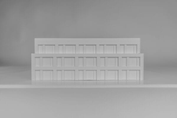 De afzonderlijke bouwdelen, variërend in hoogte van 3 tot 5 bouwlagen, zijn aan elkaar verwant. Enerzijds door het horizontale karakter, dat wordt versterkt door doorlopende horizontale banden die de afzonderlijke verdiepingen tonen. Anderzijds door de keuze voor één kleur metselwerk waarin alle bouwdelen worden opgetrokken. Daarnaast zijn ook de terrassen van de woningen die op de begane grond zijn gesitueerd, afgewerkt met dezelfde steen voor een uniform beeld.